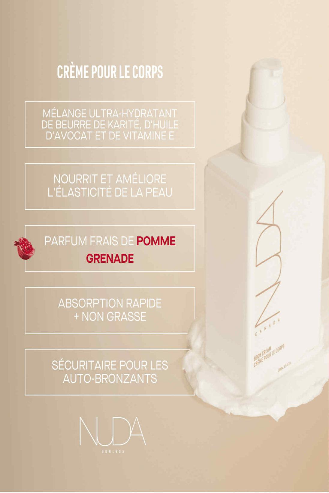 - Hydrater la peau avec notre crème pour le corps quotidiennement pour prolonger et maintenir le résultat.